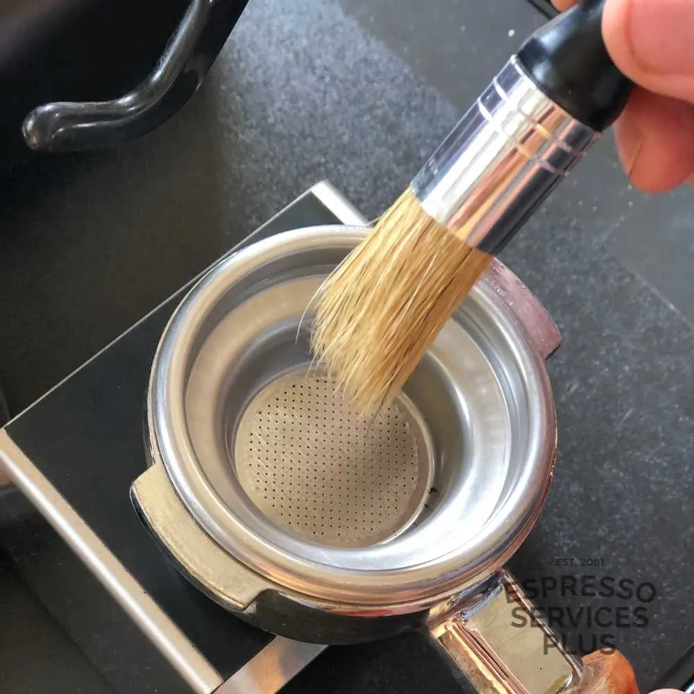 This Barista Brush is a very handy accessory to ensure your espresso coffee machine portafilter is kept clean.