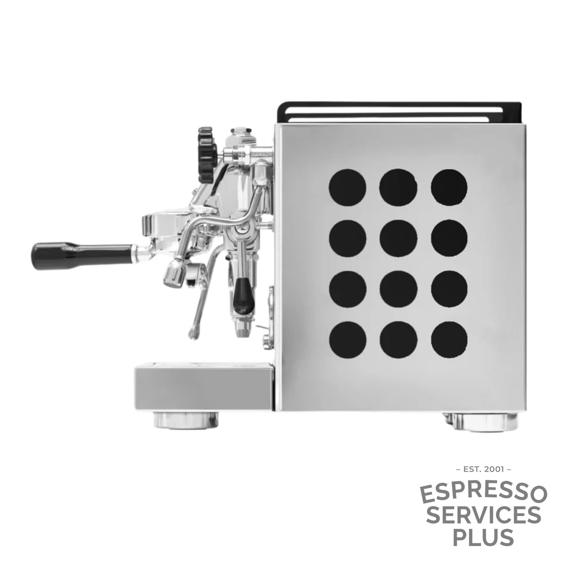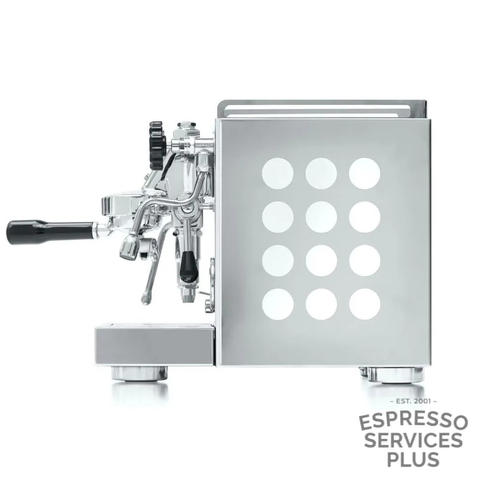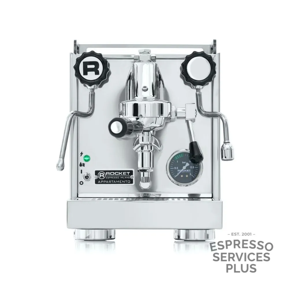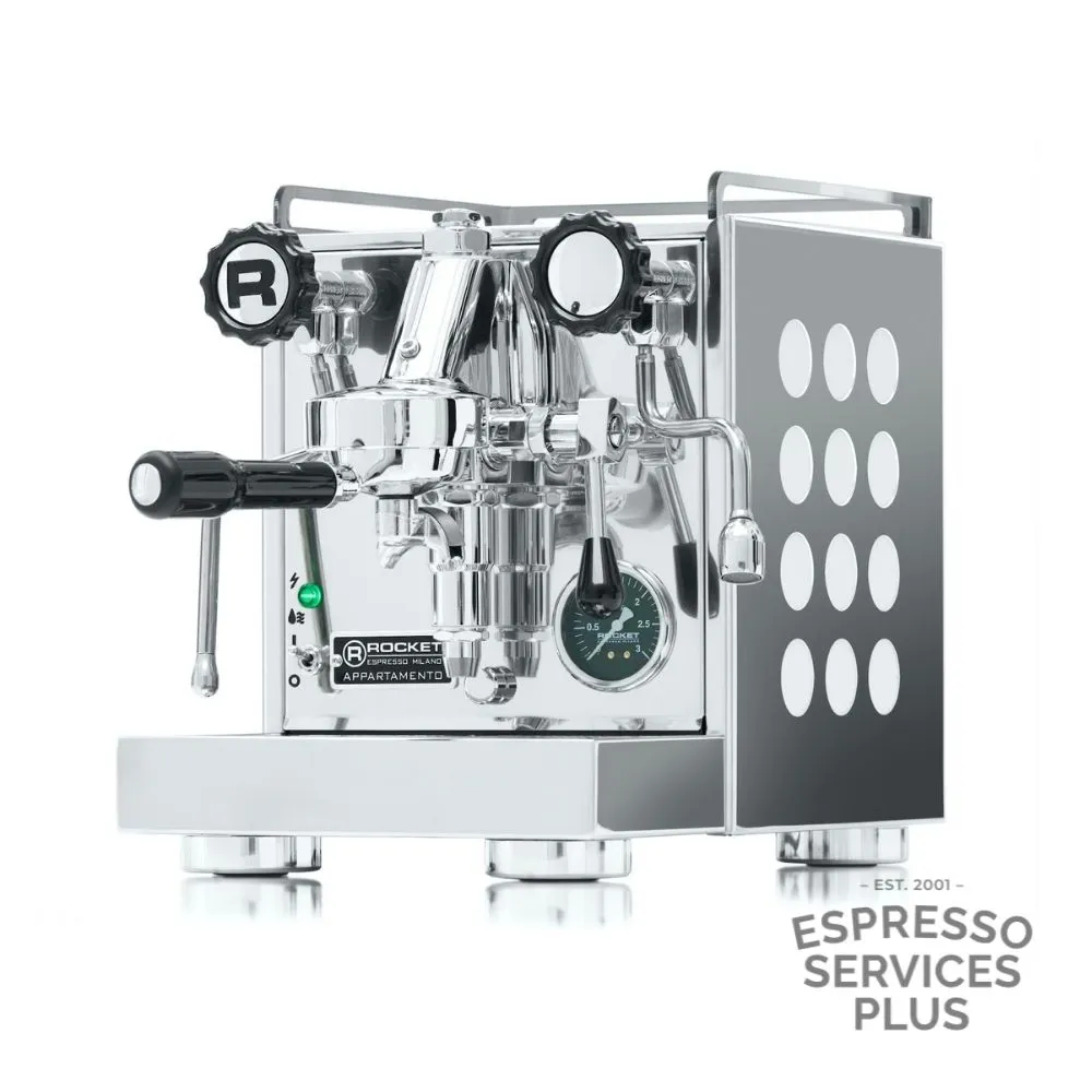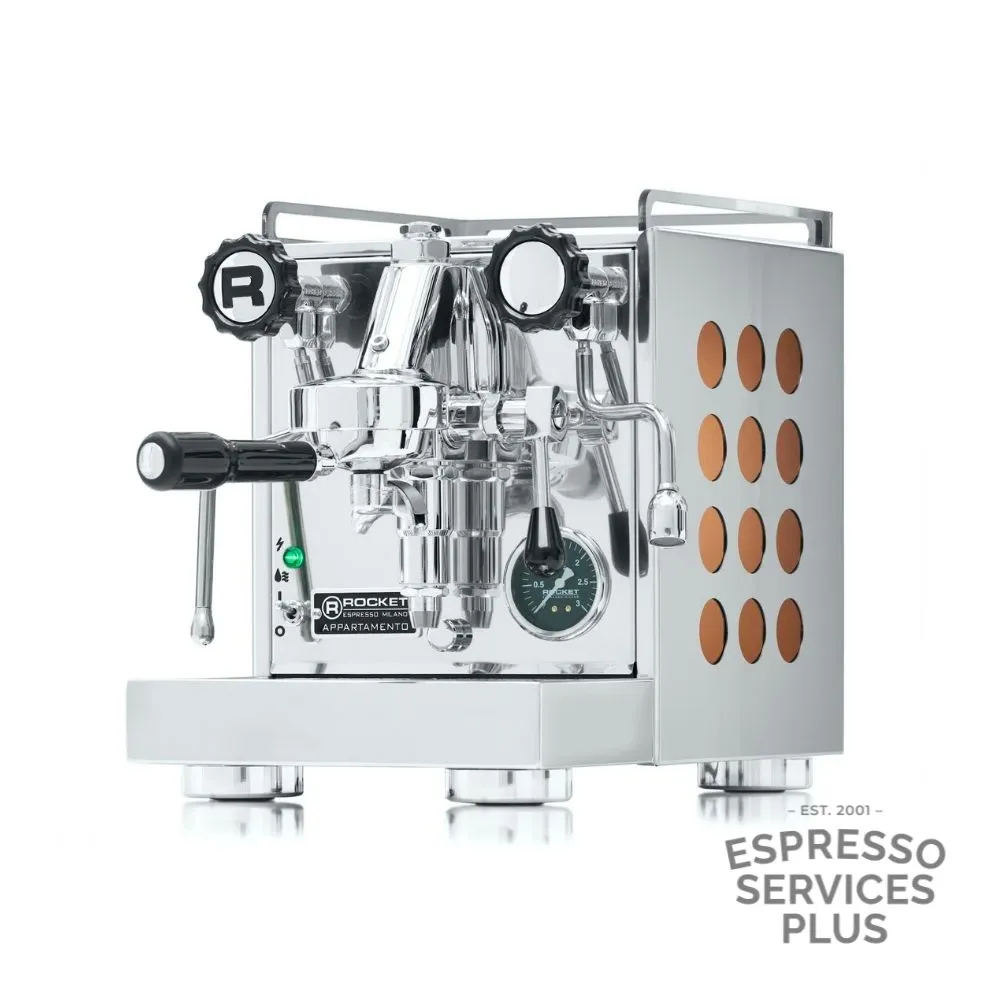 The Rocket Appartamento OG is a stylish, compact espresso machine designed to bring café-quality coffee into modern home kitchens. Featuring a commercial E61 group head and thermosyphon system, it ensures stable water pressure and temperature for exceptional espresso extraction. With a 1.8L heat exchange boiler and cool-touch steam wand, it delivers powerful steam for silky milk every time. Housed in polished stainless steel with your choice of black, white, or copper side panel inserts, the Appartamento is as beautiful as it is functional. A true statement piece for serious home baristas.