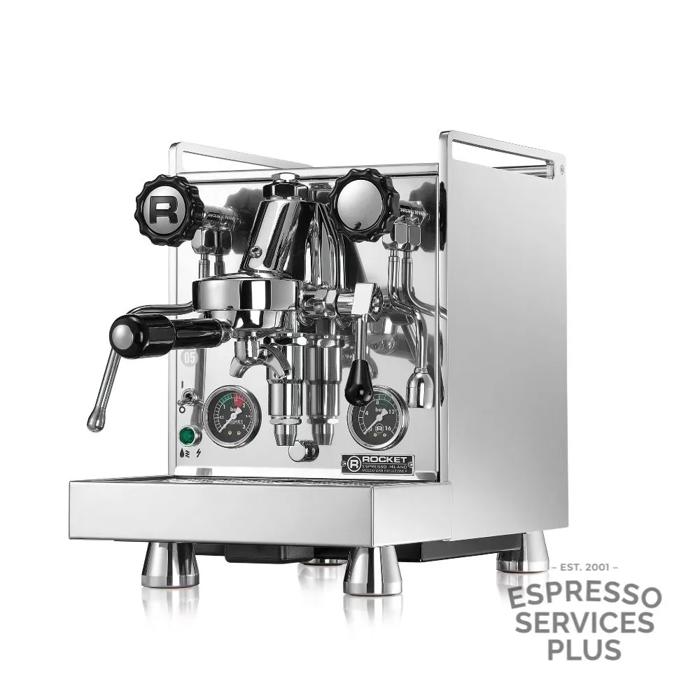 The Rocket Mozzafiato Cronometro combines commercial espresso quality with sleek, modern design for home baristas. Featuring a built-in shot timer, adjustable PID temperature control, and a 1.8L heat exchange boiler with an intelligent thermosyphon system, it delivers precision and consistency in every shot. Choose between the Tipo V (vibration pump) or Tipo R (rotary pump with plumb-in option). With its distinctive cast alloy side panels and robust E61 group head, the Mozzafiato Cronometro offers both timeless style and uncompromised performance for the serious coffee lover.